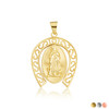 The Lady of Guadalupe Filigree Horseshoe Pendant Necklace beautifully combines two powerful symbols of protection and faith. Featuring an intricate filigree horseshoe design, this pendant is adorned with the revered image of Our Lady of Guadalupe, a beloved symbol of hope, compassion, and divine protection in the Catholic tradition. The delicate filigree work adds an elegant touch, creating a stunning piece that is both meaningful and visually appealing.