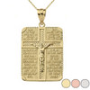 The Lord's Our Father Prayer Crucifix Rectangular Tag Pendant Necklace in Gold (Yellow/Rose/White)