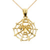 Yellow Gold Spider Web Charm Pendant Necklace.