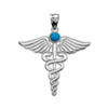 Sterling Silver Caduceus Medical Pendant Necklace with a turquoise gemstone.