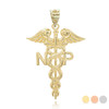 Gold Nurse Practitioner NP Caduceus Pendant Necklace ( Available In Yellow/Rose/White Gold)