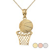 Solid Yellow Gold Textured Basketball Hoop Pendant Necklace
