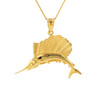 Solid Yellow Gold Marlin Swordfish Pendant Necklace