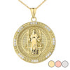 Two Sided Saint Benedict Medallion Pendant Necklace in Gold (Yellow/Rose/White)
