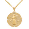 Gold St. Francis of Assisi Circle Engravable Medallion Diamond Pendant Necklace (Medium)